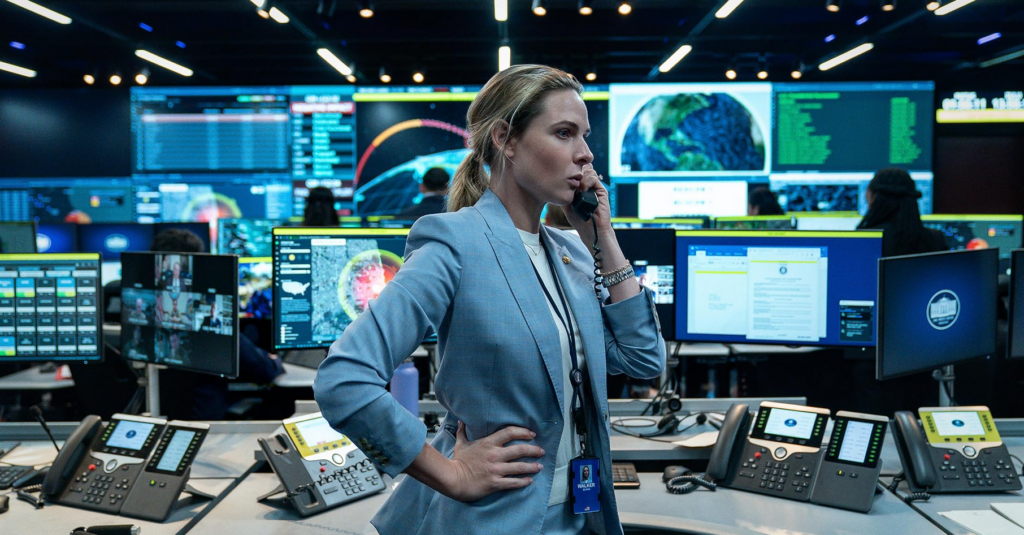 También chirría bastante la forma en la que se plantea la respuesta política y militar. Todo se resuelve con una urgencia poco creíble, como si el mundo tuviera que arder sí o sí antes de que alguien pueda pararse a pensar. Se habla de contraatacar sin saber contra quién, se asume que un solo impacto sería una derrota absoluta y se simplifica la geopolítica hasta extremos casi caricaturescos. Es ese punto de “americanada” que termina aflorando incluso cuando la película intenta ponerse seria y reflexiva, con militares haciendo bromas fuera de lugar y decisiones que parecen más propias de un espectáculo que de una situación DEFCON real.